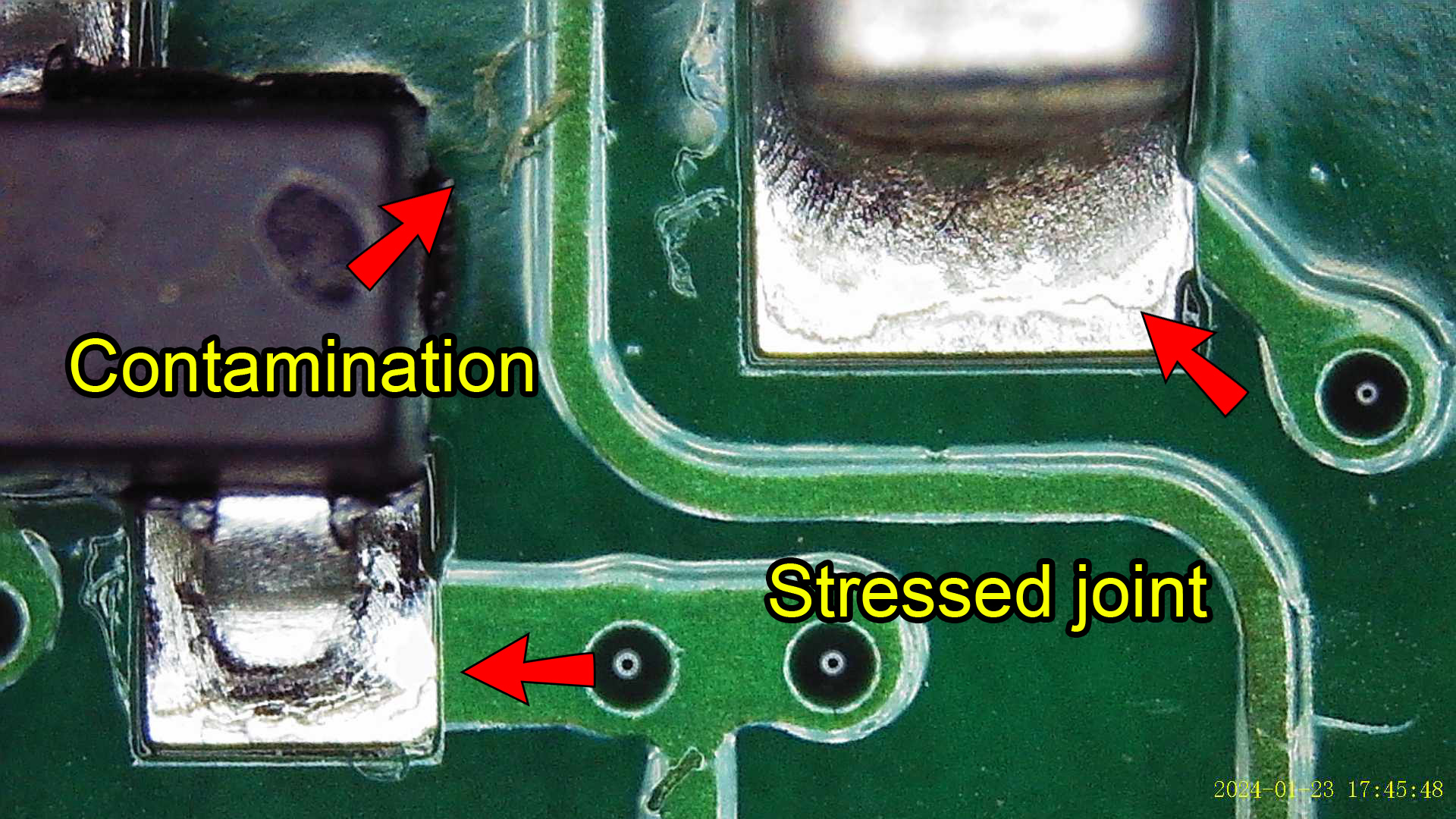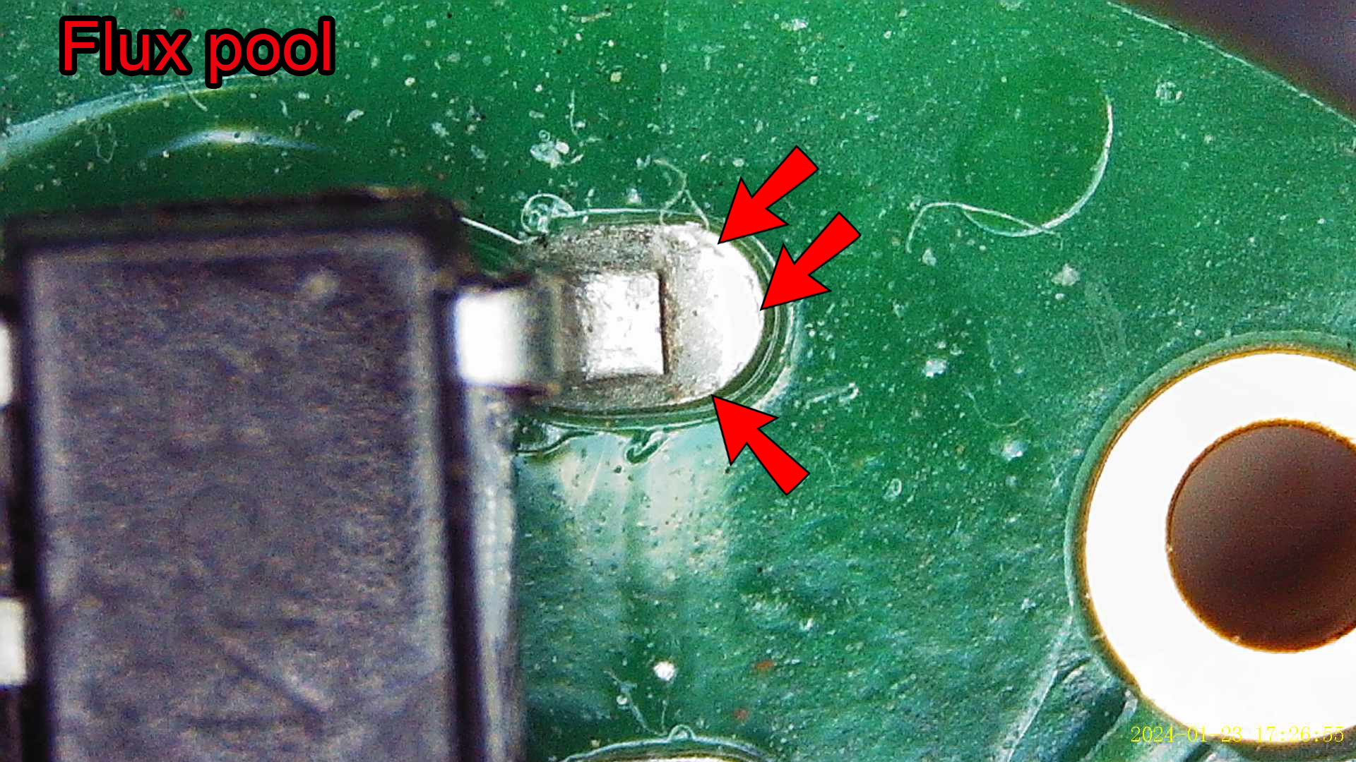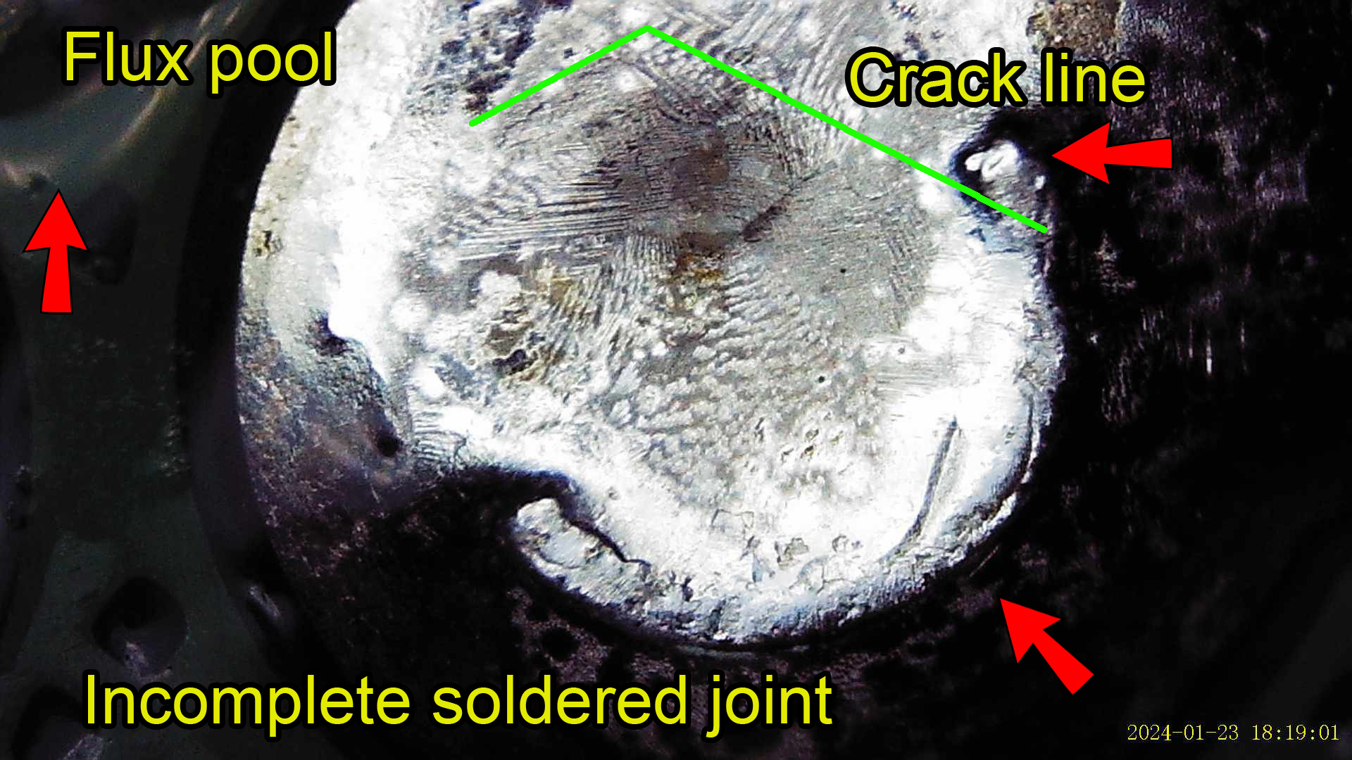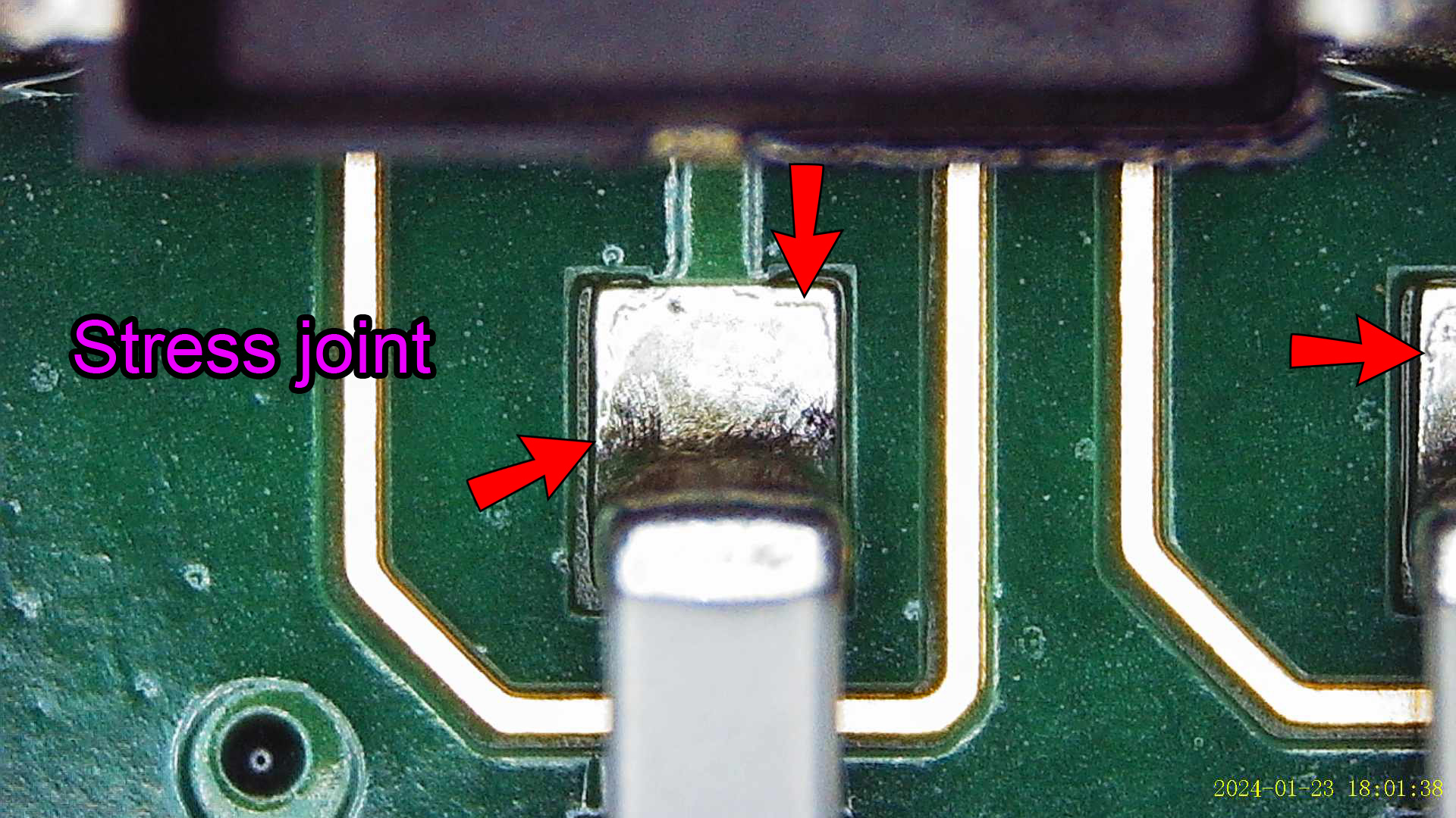 Garrett Australia offered me a second hand/used machine as a replacement under instruction from those above them when I for either a full refund (preferred) or a brand new replacement. I decided to dismantle the machine to check if there was any obvious problems, which led me to the following after noticing a very definite dry solder joint.