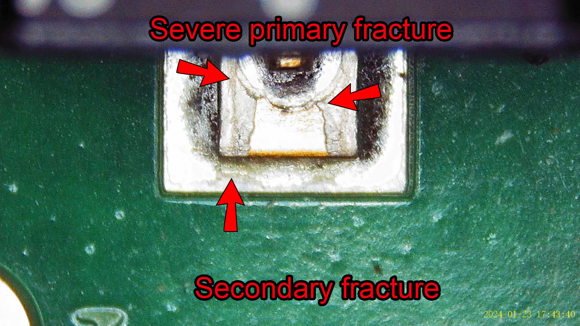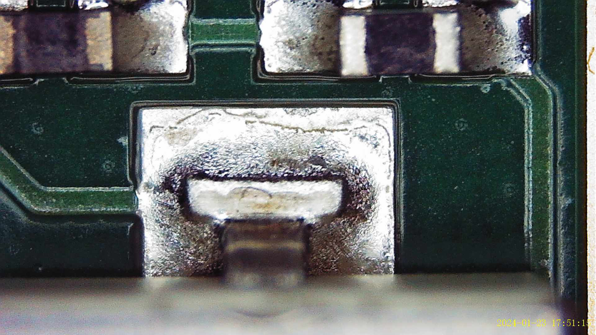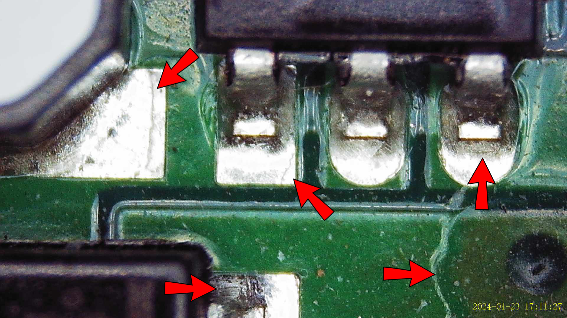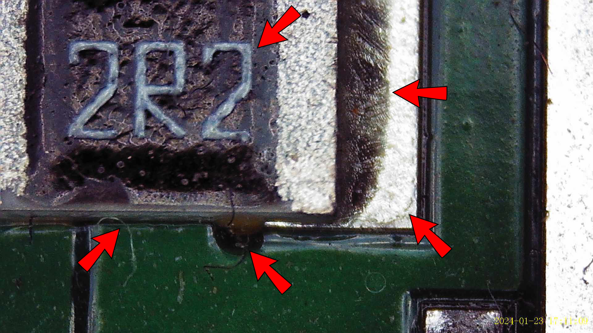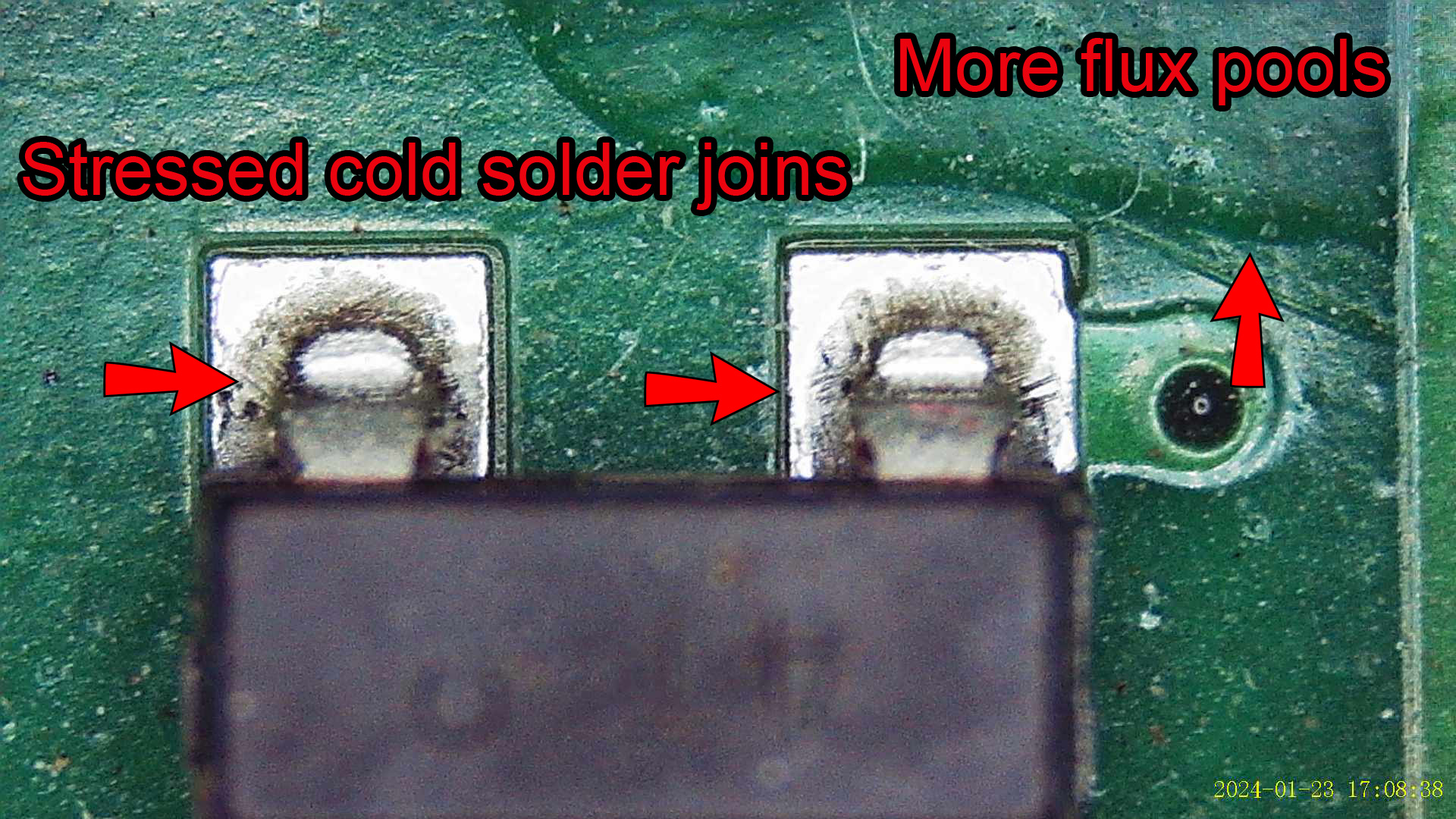 Garrett Australia offered me a second hand/used machine as a replacement under instruction from those above them when I for either a full refund (preferred) or a brand new replacement. I decided to dismantle the machine to check if there was any obvious problems, which led me to the following after noticing a very definite dry solder joint.