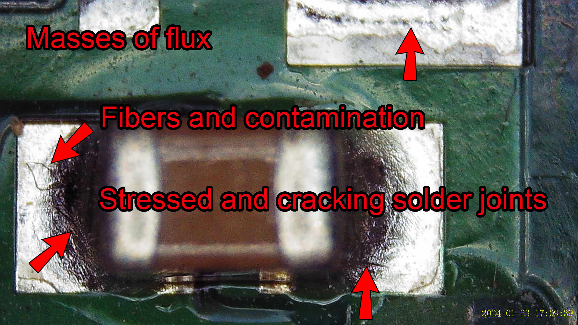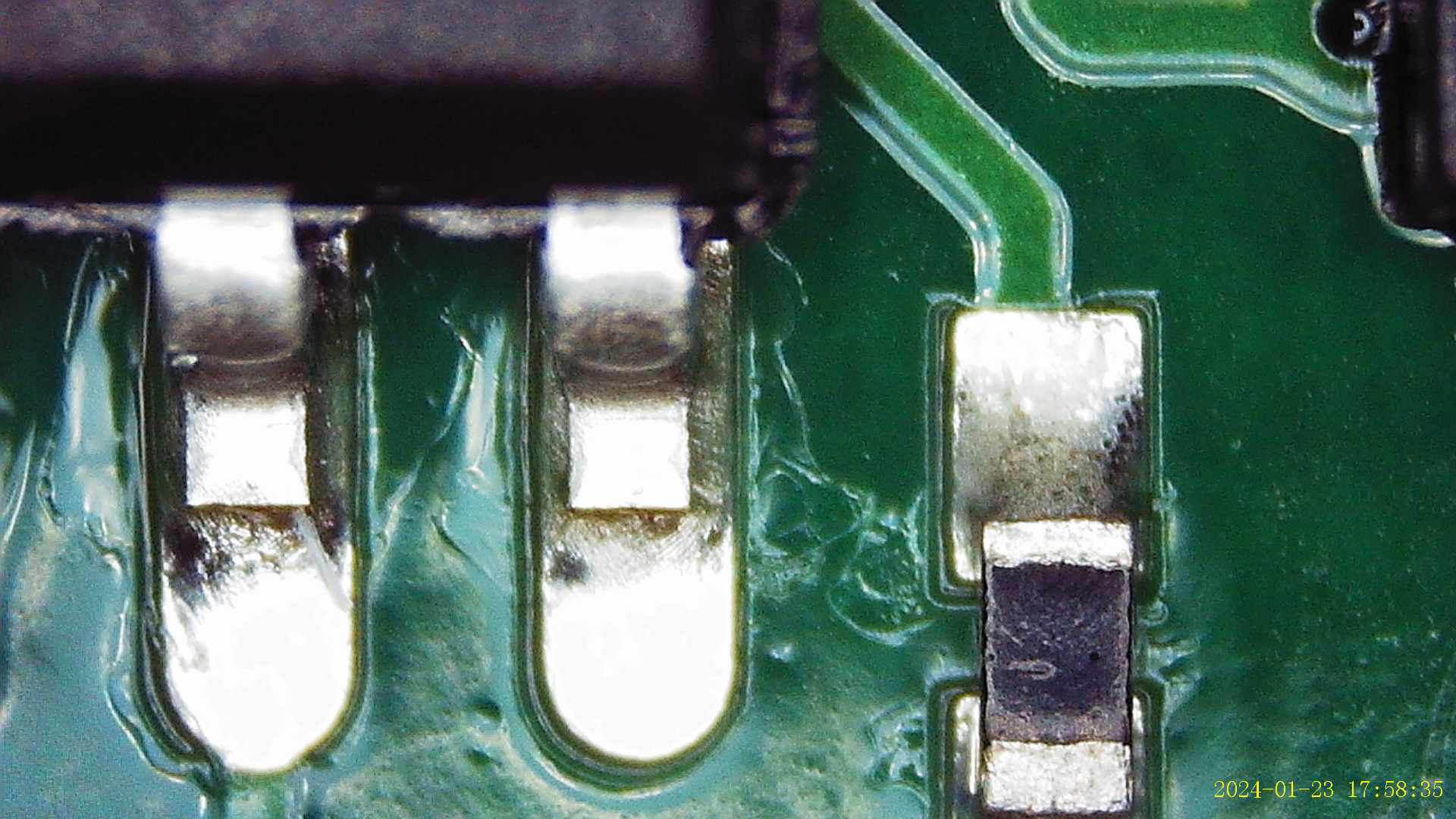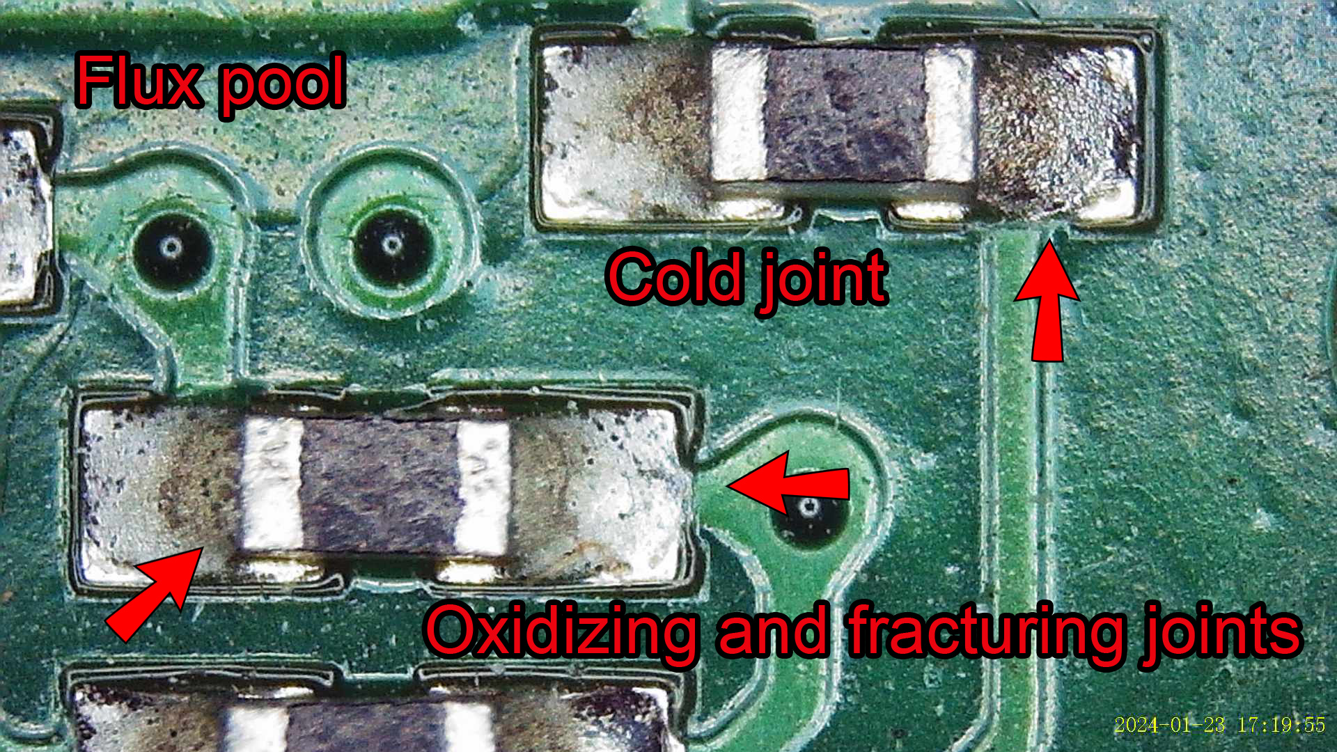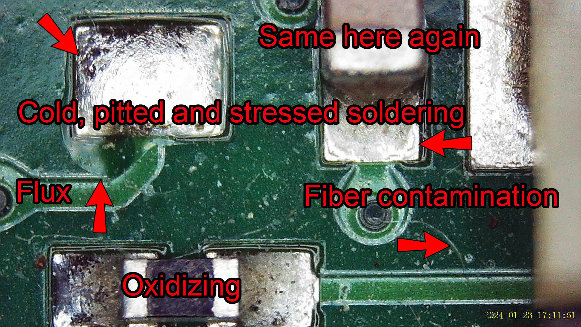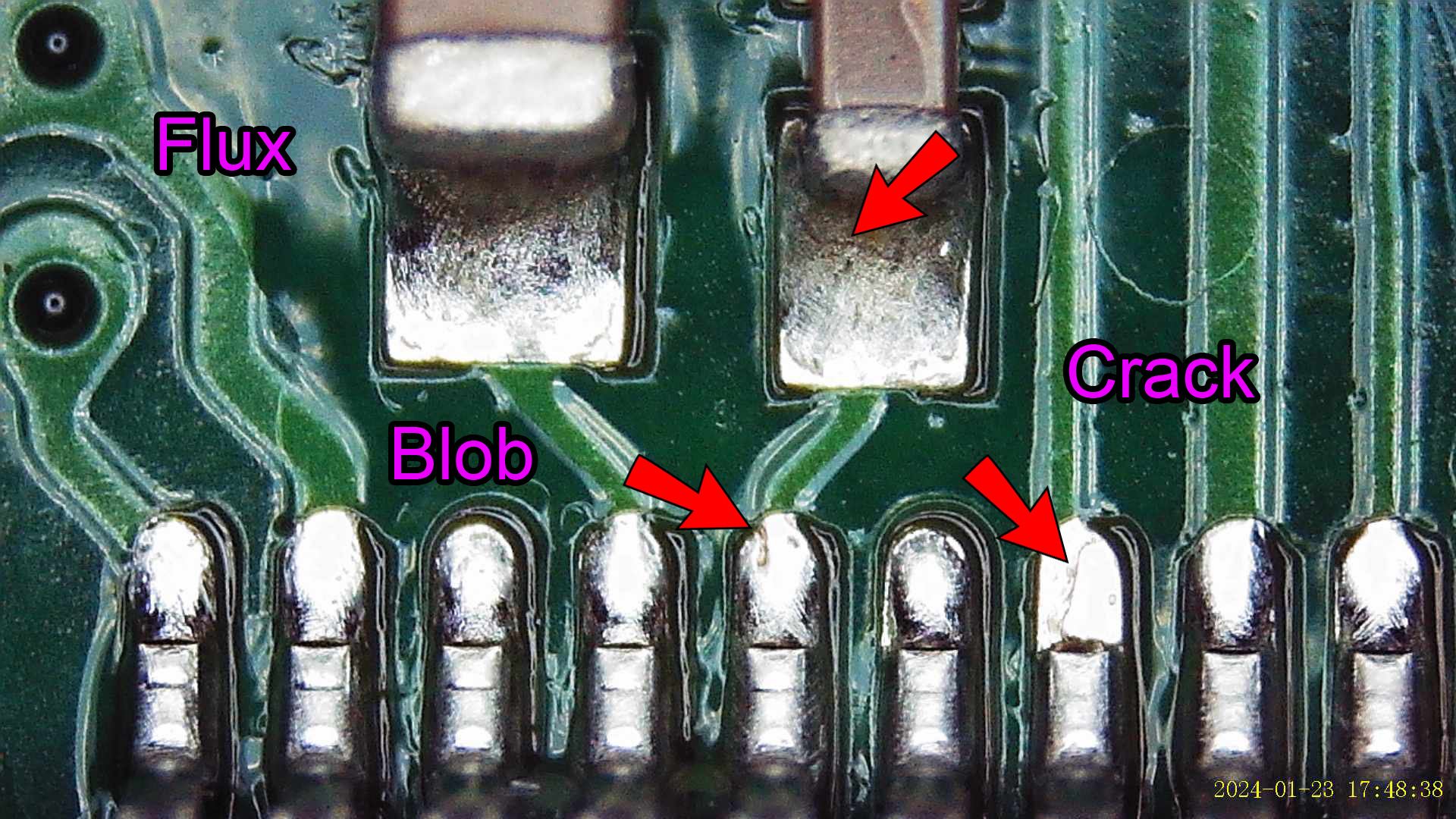 Garrett Australia offered me a second hand/used machine as a replacement under instruction from those above them when I for either a full refund (preferred) or a brand new replacement. I decided to dismantle the machine to check if there was any obvious problems, which led me to the following after noticing a very definite dry solder joint.
