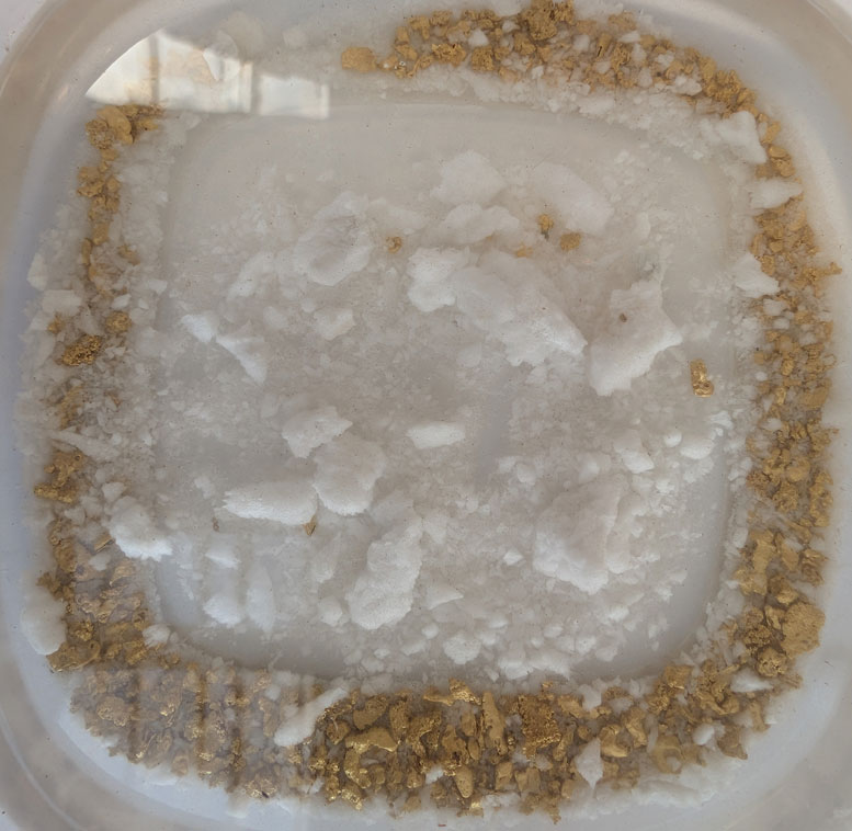Fortunately the process of removing the ironstone is rather easy. Use a suitable plastic container (that will never be used for food!) – place the gold in the container and cover with acid.