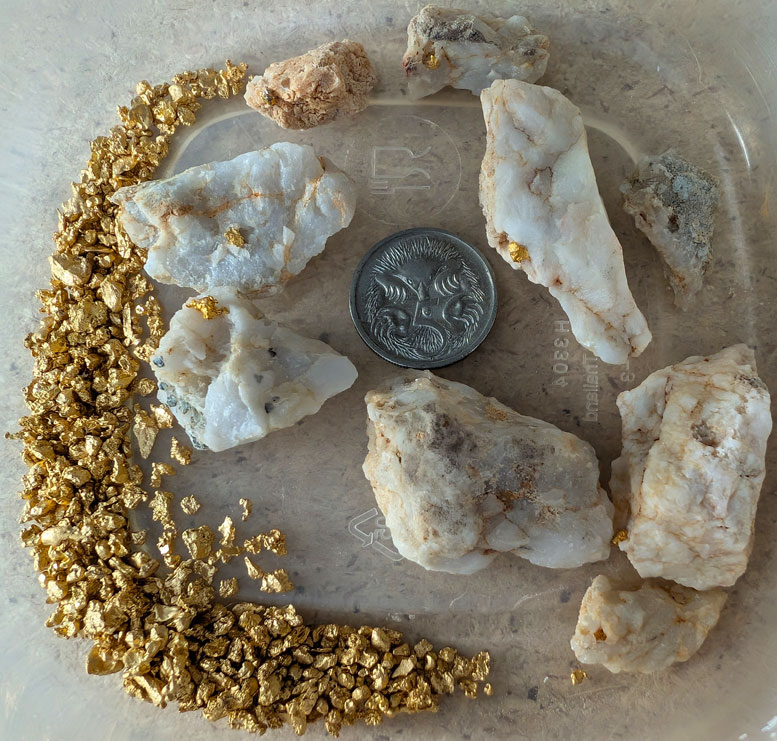 Other specimens merely hold the gold in small chunks or other unappealing rock displays and prospectors remove the host rock for the actual gold value.